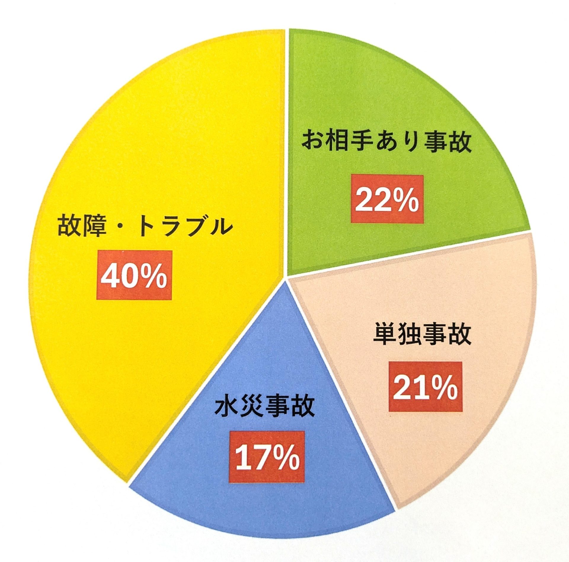 意外だったのは、車の故障やパンク・バッテリー上がりなどのトラブルによるものが一番多かったということです。(ここには水災事故は含んでいません)